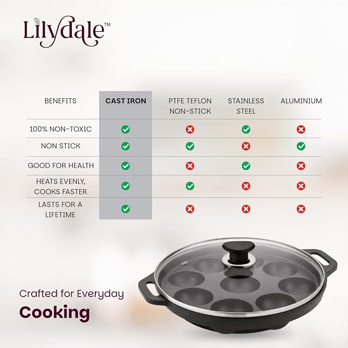 - 9-Pit Traditional Design – Perfect for making delicious South Indian favorites like appe, unniyappam, paniyaram, paddu, litti, and ponganal with authentic taste and texture.