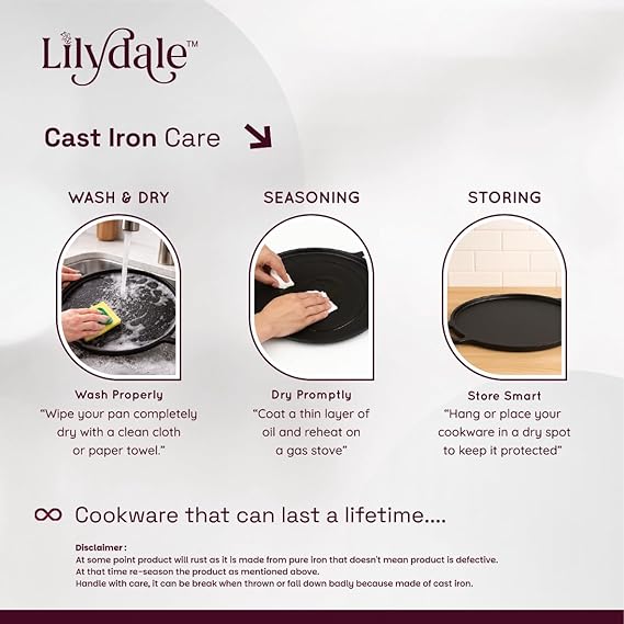 - Naturally Pre-Seasoned Surface: Pre-seasoned with edible oils — completely Teflon-free, toxin-free, and chemical-free, providing a safe, natural non-stick finish that improves with every use.
