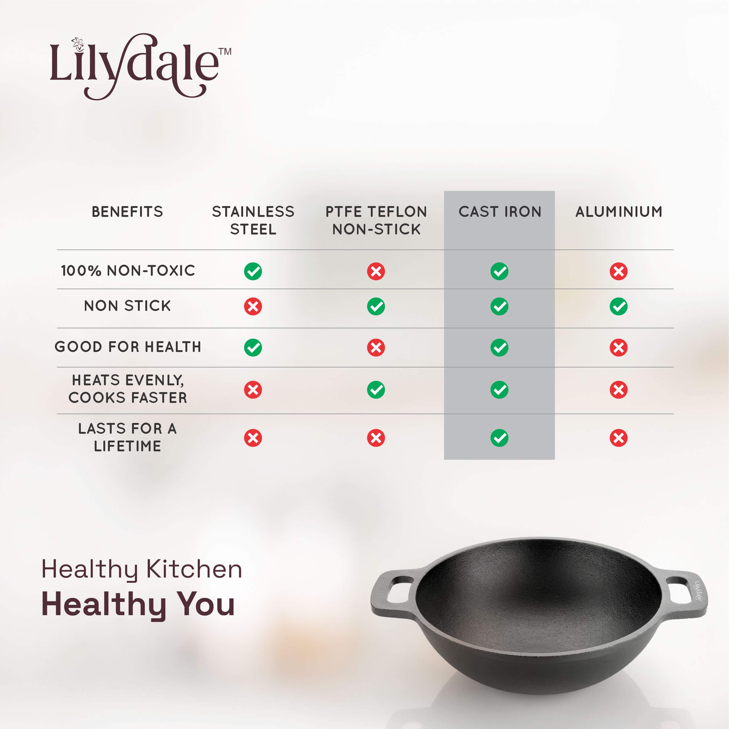 ENRICHES FOOD WITH IRON : Adds iron content to your meals that helps fight iron deficiency. Truly healthy cookware!