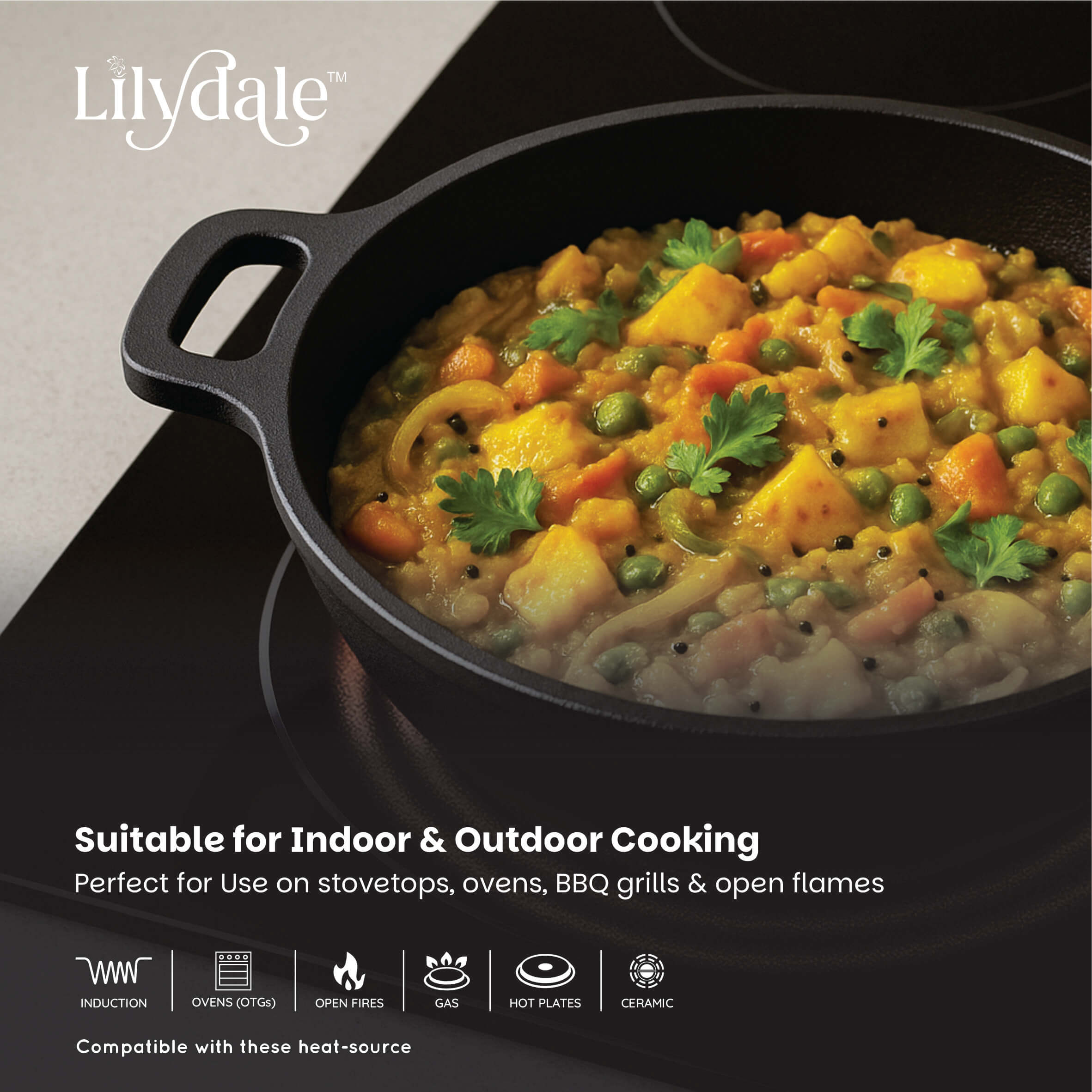 VERSATILE COOKING : Pre-seasoned cast iron kadai perfect for cooking biriyani, gravies, searing, and stewing on both gas and induction cooktops